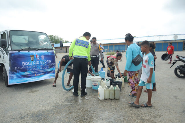 “Kami hadir berikan bantuan berupa Air Bersih ini dalam rangka memperingati hari Lalu Lintas Bhayangkara ke-68 tahun 2023 yang disalurkan kepada Wargas Pasar Omele Desa Sifnana” tuturnya.