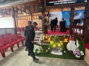 Tribratanews.polrestanimbar.com – Polda Maluku, Kepolisian Resor Kepulauan Tanimbar, Menjelang perayaan Ibadah malam Natal Tahun 2024, Personel TNI Polri yang tergabung dalam Operasi Lilin Salawaku 2024 Polres Kepulauan Tanimbar melaksanakan sterilisasi di sejumlah Gereja yang ada di Kota Saumlaki, Kecamatan Tanimbar Selatan, Kabupaten Kepulauan Tanimbar,