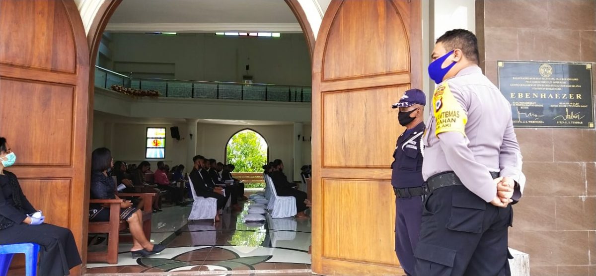 Tribratanews.polrestanimbar.com – Polda Maluku, Polres Maluku Tenggara Barat, Minggu 07 Juni 2020, pukul 09.00 Wit, bertempat di Gereja Ebenhaezer Saumlaki Kecamatan Tanimbar Selatan, Kabupaten Kepulauan Tanimbar Kabag Sumda Polres Maluku Tenggara Barat Kompol O. Lekawael hadiri sekaligus pimpin personil dan Bhabinkamtibmas Kelurahan Saumlaki melaksanakan Pengamanan terhadap kegiatan Ibadah Minggu dan Pengukuhan terhadap anggota Sidi Baru.