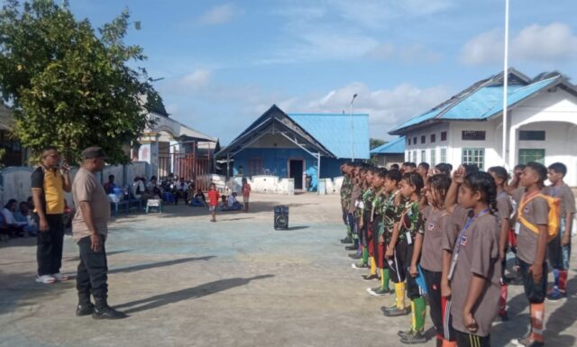 Tribratanews.polrestanimbar.com – Polda Maluku, Polres Kepulauan Tanimbar, Sebagai bentuk kepedulian terhadap Dunia Pendidikan, Kanit Binmas Aiptu Aris Samponu bersama Bhabinkamtibmas Desa Kandar Bripka M. I. Lambiombir Melaksanakan Latihan Dasar Disiplin Korps (LDDK) kepada siswa siswi SMK Negeri 7 Kepulauan Tanimbar, yang bertempat di alun-alun Desa kandar, Kecamatan Selaru Kabupaten Kepulauan Tanimbar, Jumat (14/07).