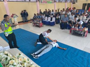 Kegiatan dipimpin langsung oleh PS. Kanit Kamsel Bripka A. Layan dan anggotanya Brigpol M. Toisuta dengan jenis materi yang diberikan yaitu, tentang keamanan, keselamatan, ketertiban dan kelancaran (Kamseltibcar) Lantas, Pertolongan pertama pada korban kecelakaan lalu lintas di tempat kejadian perkara (TKP), cara pengunaan helm standar nasional Indonesia (SNI) yang benar, manfaat santunan Jasa Raharja, BPJS dan Laporan Polisi Laka Lantas, Etika berlalu lintas serta nilai-nilai moril.