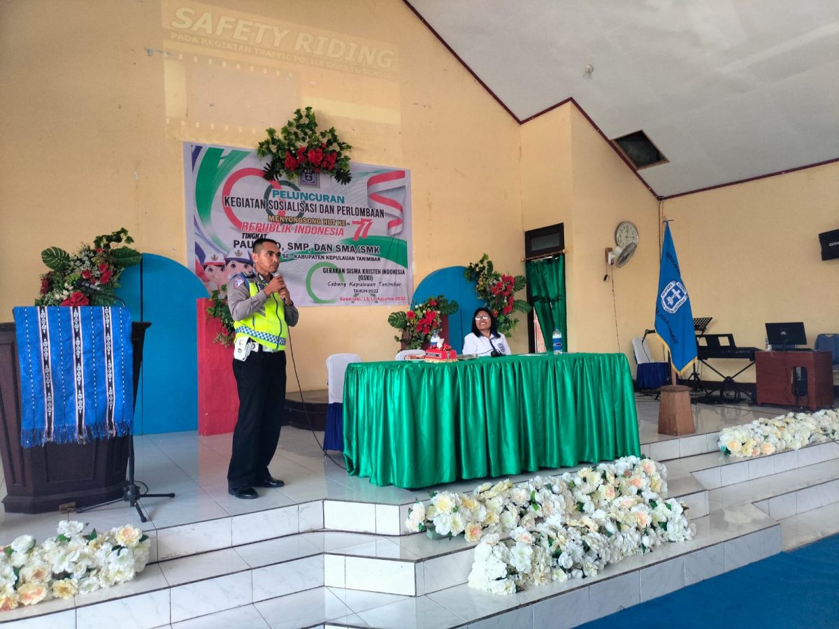 Kanit Kamsel Unit Dikmas Sat Lantas Polres Tanimbar Sosialisasikan Lalu Lintas pada kegiatan GSKI