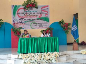 Tribratanews.polrestanimbar.com – Polda Maluku, Polres Kepulauan Tanimbar, unit Dikmas satuan lalu lintas Polres Tanimbar berikan Sosialisasi tentang lalu lintas kepada para Siswa kegiatan Sosialisasi dan Perlombaan menyongsong HUT ke-77 Kemerdekaan RI tingkat Paud, SD, SMP dan SMA/SMK se-Kabupaten Kepulauan Tanimbar yang diselenggaran oleh Gerakan Siswa Kristen Indonesia (GSKI) Cabang Kepulauan Tanimbar di gedung BPU Sejahtera Saumlaki. Kamis (11/08).