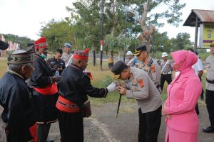 Dengan didampingi ketua Bhayangkari Daerah Maluku Ibu Evi Lotharia Latif, Karo Ops, Kombes Pol Asep Saipudin, S.I.K, Direktur Intelkam, Kombes Pol Rali Muskitta, S.I.K, Direktur Reskrimum, Kombes Pol Andi Iskandar, S.I.K, dan Komandan Satuan Brimob Polda Maluku, Kombes Pol Dostan M. Siregar, orang nomor satu di Polda Maluku ini, berkesempatan untuk mengunjungi Markas Polres Tanimbar dan disambut dengan tradisi adat Tanimbar berupa Pengalungan Syal tenun oleh tua-tua adat desa Olilit Raya, kecamatan Tanimbar Selatan, kabupaten kepulauan Tanimbar.