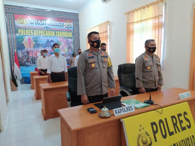 Tribratanews.polrestanimbar.com – Polda Maluku, Polres Maluku Tenggara Barat, Selasa 08 Desember 2020, pukul 10.00 wit bertampat di Ruangan Vicon Polres Kepulauan Tanimbar, Kapolres Kepulauan Tanimbar AKBP Romi Agusriansyah, S.I.K didampingi oleh Kabag Sumda AKP Markus Sallo, S.H., mengikuti Kegiatan Penanda tanganan Pakta Integritas dan Pengambilan Sumpah Rekrutmen Proaktif dalam Penerimaan Bintara Polri TA. 2021 Polda Maluku yang dilaksanakan secara Virtual.