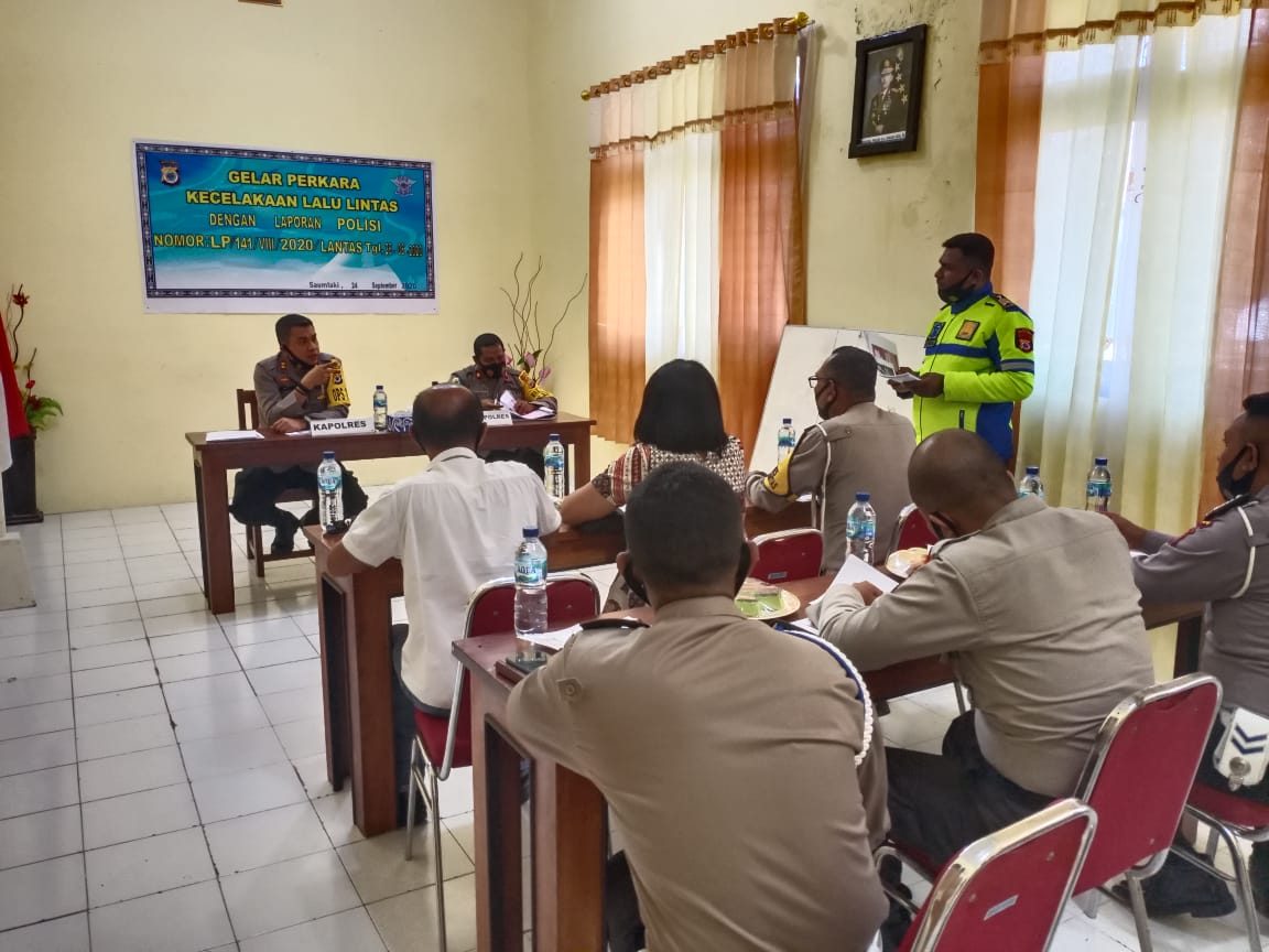 Tribratanews.polrestanimbar.com – Polda Maluku, Polres Maluku Tenggara Barat, Kamis 24 September 2020, pukul 10.20 wit bertempat di ruangan Rapat Polres Kepulauan Tanimbar Kapolres Kepulauan Tanimbar AKBP Romi Agusriansyah, S.I.K., didampingi Waka Polres Kompol Hendra Y.P. Haurissa, S.H., memimpin kegiatan Gelar Perkara Kecelakaan Lalu Lintas dengan Laporan Polisi Nomor : LP/141/VIII/2020/Lantas tanggal, 26 Agustus 2020 dan Laporan Polisi dengan Nomor : LP/ 145/IX/2020, tanggal 04 September 2020.