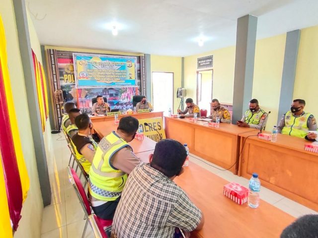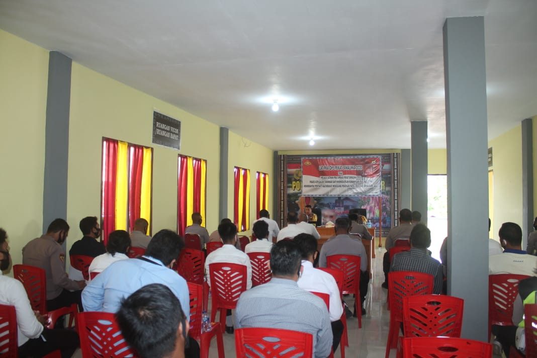 Tribratanews.polrestanimbar.com – Polda Maluku, Polres Maluku Tenggara Barat, Rabu 18 November 2020, pukul 09.35 wit, bertempat di ruang Vicon Polres Kepulauan Tanimbar, Kapolres Kepulauan Tanimbar AKBP Romi Agusriansyah, S.I.K., didampingi Waka Polres Kompol Hendra Y. P. Haurissa, S.H., Memimpin Kegiatan Latihan Pra Ops Simpatik Siwalima Tahun 2020 dengan Tema “Melalui Latihan Pra Operasi Simpatik Siwalima 2020, Kita Tingkatkan Kemampuan Personil dan Sinergitas antar Fungsi guna Mewujudkan Kamseltibcar Lantas di Wilayah Hukum Polres Kepulauan Tanimbar”.