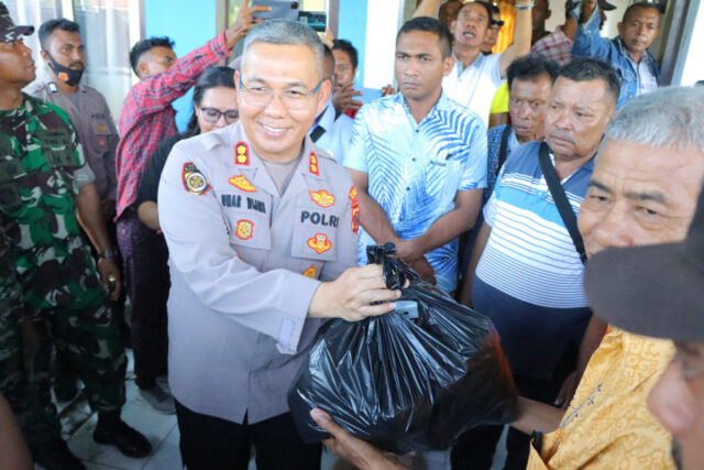 Tribratanews.polrestanimbar.com – Polda Maluku, Polres Kepulauan Tanimbar, Kapolres Kepulauan Tanimbar AKBP Umar Wijaya, S.I.K bersama Forkopimda KKT bersama TNI/POLRI dan Rombongan Jumat, (14/1/23) Melaksanakan Penyaluran Debarkasi Bantuan Sosial Bencana Alam kepada Korban Bencana Alam di Kecamatan Wertamrian, Kabupaten Kepulauan Tanimbar.