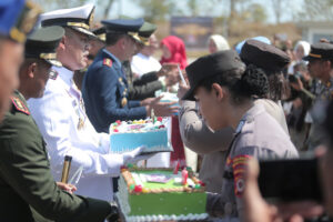 Dalam kesempatan itu, Kapolres Kepulauan Tanimbar didampingi Ibu Ketua Bhayangkari Cabang bersama Wakapolres dan para PJU hingga Personel menyerahkan nasi tumpeng dan Kue Ulang Tahun sebagai kado terindah di Hari Ulang Tahun TNI yang ke-79 tersebut sembari menyanyikan lagu Selamat Ulang Tahun bersama seluruh Personel yang hadir.