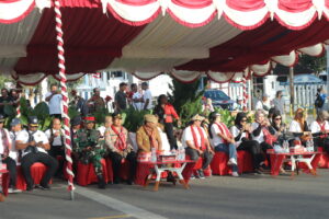 Nampak hadir Penjabat Bupati Kepulauan Tanimbar Drs. Ruben Benharvioto Moriolkossu, MM., bersama Ibu, Kapolres Kepulauan Tanimbar AKBP Umar Wijaya, S.I.K., bersama Ibu, beserta seluruh Forkopimda, Tokoh Agama, Para Staf Ahli Bupati, Para Asisten Setda, Pimpinan OPD lingkup Pemda Kabupaten Kepulauan Tanimbar dan tamu undangan lainnya.