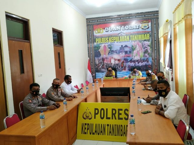 Tribratanews.polrestanimbar.com – Polda Maluku, Polres Maluku Tenggara Barat, Senin 08 Februari 2021, pukul 13.00 wit, bertempat di ruang Vicon, Kapolres Kepulauan Tanimbar AKBP Romi Agusriansyah, S.I.K., didampingi Waka Polres Kompol Hendra Y. P. Haurissa, S.H., dan PJU Polres, ikuti kegiatan Vicon tentang penyampaian Kapolri pada Rapat Koordinasi lanjutan Pembahasan tindak lanjut Penanganan Covid-19 pada tingkat Polda dan Polres Jajaran.