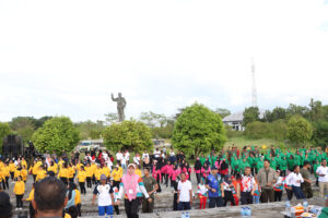 Ketika Para Peserta jalan pagi tiba di taman kota Saumlaki, kegiatan tersebut diawali dengan senam pagi, setelah itu dilaksanakan pencabutan undian Door Prize dan dilanjutkan dengan pembagian Hadiah.