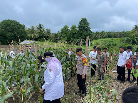 Sementara itu tampak terlihat Penjabat Bupati bersama Kapolres maupun para Pejabat lainnya melakukan panen jagung pulut manis. Seluas setengah hektar, proses panen jagung pun berhasil dilakukan dalam acara tersebut. Panen ini tentunya menunjukkan hasil nyata dari sinergi antara Pemerintah, Kepolisian maupun Masyarakat dalam memanfaatkan potensi pertanian yang ada, guna meningkatkan kesejahteraan Petani dan mendukung ketersediaan bahan pangan Lokal maupun Nasional.