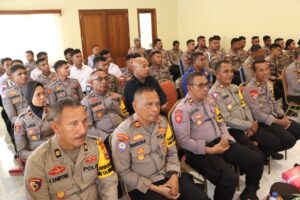 “Saya atas nama pimpinan, membawa pesan untuk rekan-rekan semua yang ada di Polres ini, mari kita sama-sama menjaga nama baik Polri. Saya minta semua mengikuti kebijakan pimpinan yang sudah ada, terutama netralitas kita dalam menghadapi pengamanan Pemilu. Saya berharap disini tidak ada aduan-aduan dari masyarakat terkait Netralitas kita, karena kita harus adil dan netral” tuturnya.