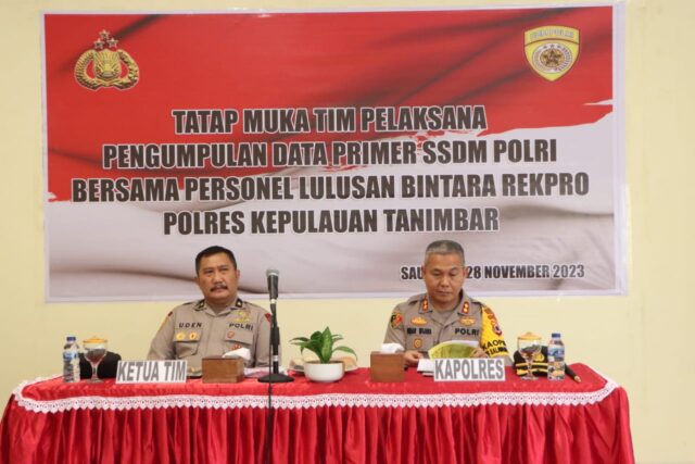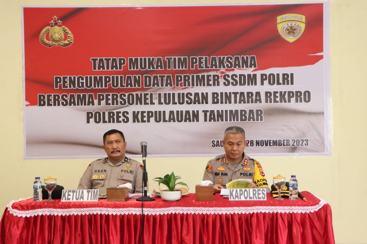 Kedatangan Tim SSDM Polri yang dipimpin oleh Brigjen Pol Drs. UDEN KUSUMA WIJAYA, S.H., M.M., Analis Kebijakan Utama Bidang Watpers SSDM Polri ini dalam rangka melaksanakan Kunjungan Kerja Tim Pelaksana Pengumpulan Data Primer dan Penyusun Kajian Kebijakan Penyelenggaraan Personel Polri di Wilayah Perbatasan dan Pulau-Pulau Kecil Terluar di Wilayah Hukum  Polres Kepulauan Tanimbar.