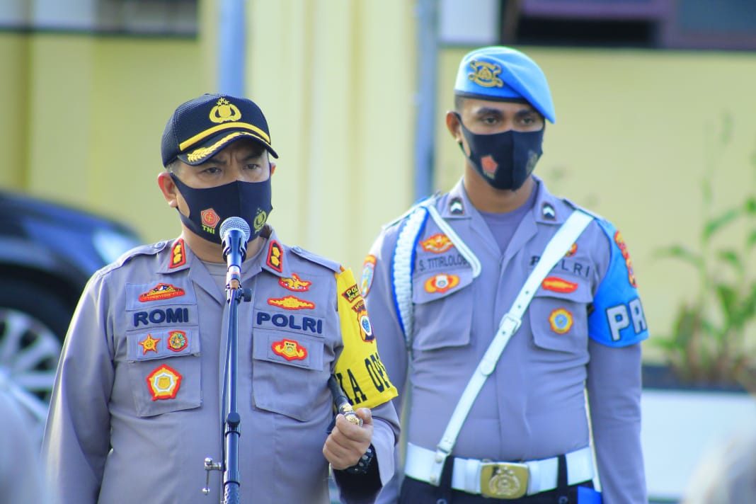 Tribratanews.polrestanimbar.com – Polda Maluku, Polres Maluku Tenggara Barat, Senin 28 September 2020, pukul 07.00 wit Kapolres Kepulauan Tanimbar AKBP Romi Agusrianysah, S.I.K., memimpin Apel pagi sekaligus Giat Jam pimpinan kepada seluruh personil Polres Kepulauan Tanimbar bersama personil Brimob Kompi III Batalyon C Pelopor Saumlaki.