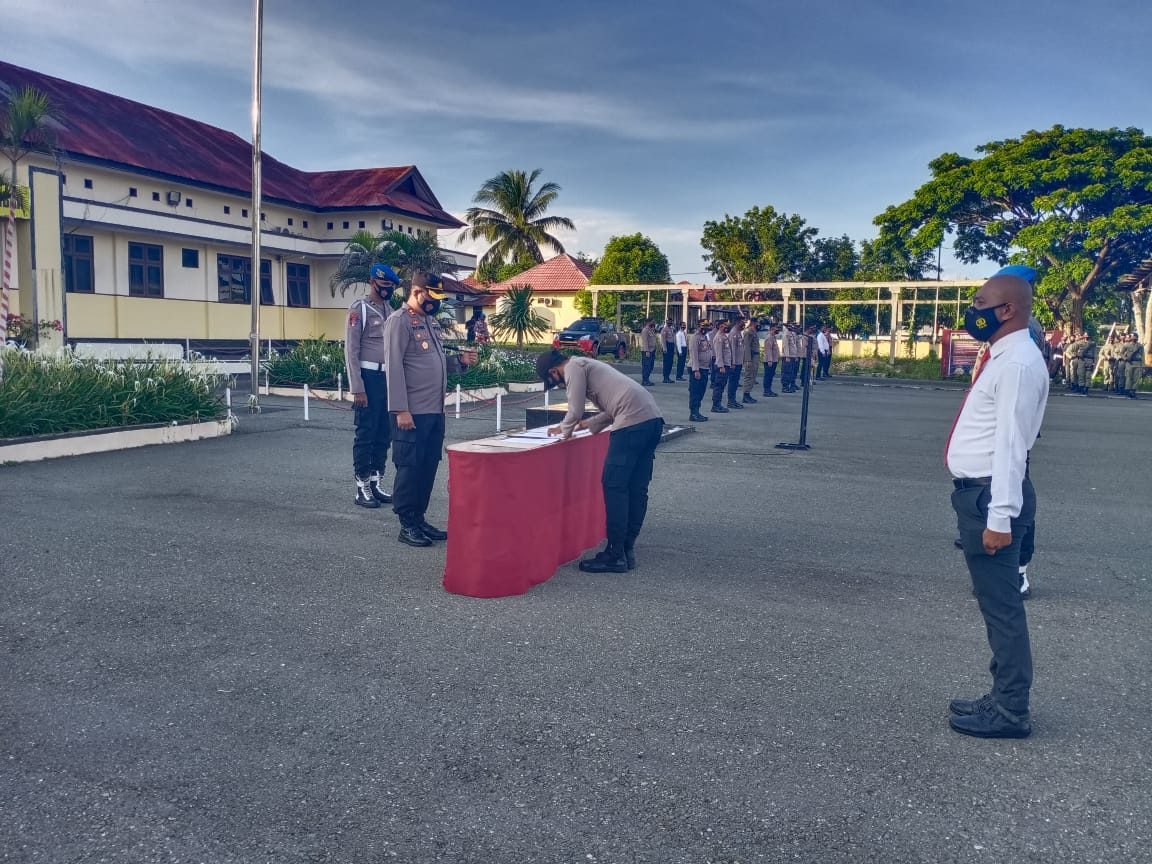 Beranda Berita Polres Kapolres Kepulauan Tanimbar Pimpin Giat Apel pagi dan penanda tanganan Pernyataan tidak...