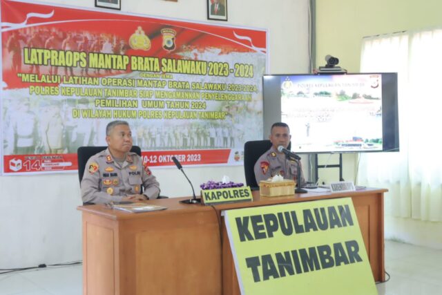 Tribratanews.polrestanimbar.com – Polda Maluku, Polres Kepulauan Tanimbar menggelar giat Pelatihan Pra Operasi Mantab Brata Salawaku 2023-2024, yang bertempat di Ruangan Lantai II Satintelkam Polres Kepulauan Tanimbar, Selasa (10/10) siang.