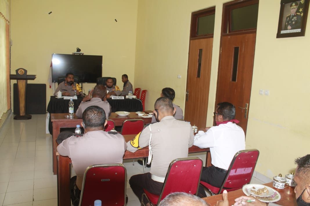 Tribratanews.polrestanimbar.com – Polda Maluku, Polres Maluku Tenggara Barat, Senin 13 Juli 2020, Setelah selesai mengikuti Giat Vidcon Taklimat Akhir wasrik Itwasum Polri tahap II tahun 2020 di ruang Vidcon Polres Maluku Tenggara Barat, Kapolres MTB AKBP Adolof Bormasa, S.H.,M.H., didampingi Waka Polres Kompol H. Haurissa, S.H., Pimpin Giat Rapat bersama PJU dan Perwira Polres MTB.