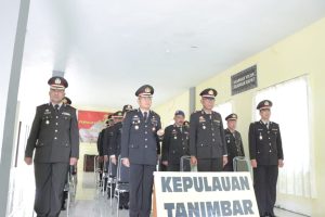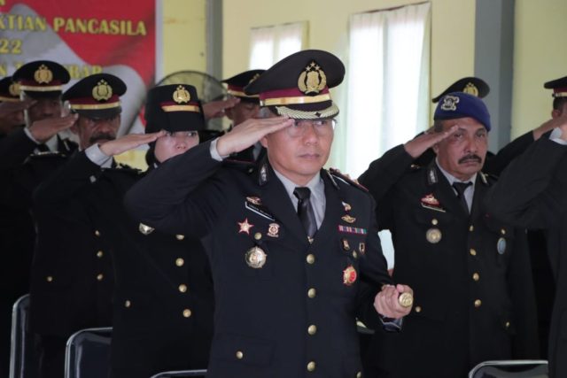 Tribratanews.polrestanimbar.com – Polda Maluku, Polres Kepulauan Tanimbar, Kapolres AKBP Umar Wijaya, S.I.K., bersama Wakapolres, Pejabat utama dan Perwira Staf Ikuti Upacara Peringatan Hari Kesaktian Pancasila tahun 2022 secara Live Streaming di lantai II ruang Pelayanan Publik Polres, Sabtu (01/10), pagi.