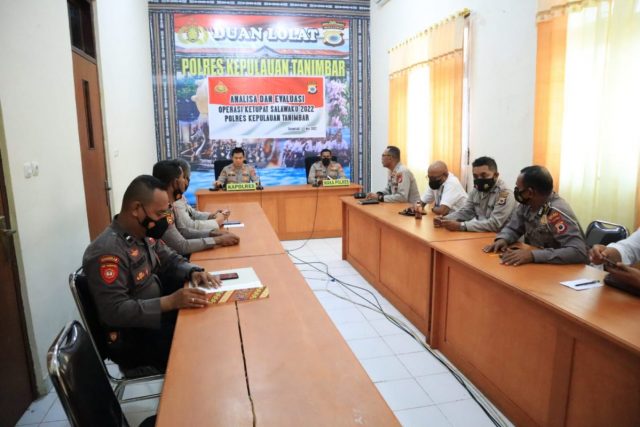 Tribratanews.polrestanimbar.com – Polda Maluku, Polres Kepulauan Tanimbar, diruang Vicon, digelar Rapat Analisa dan Evaluasi Operasi Ketupat Salawaku tahun 2022 Polres Tanimbar. Rabu (11/05/2022).