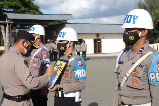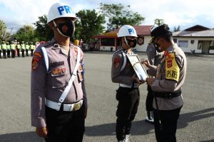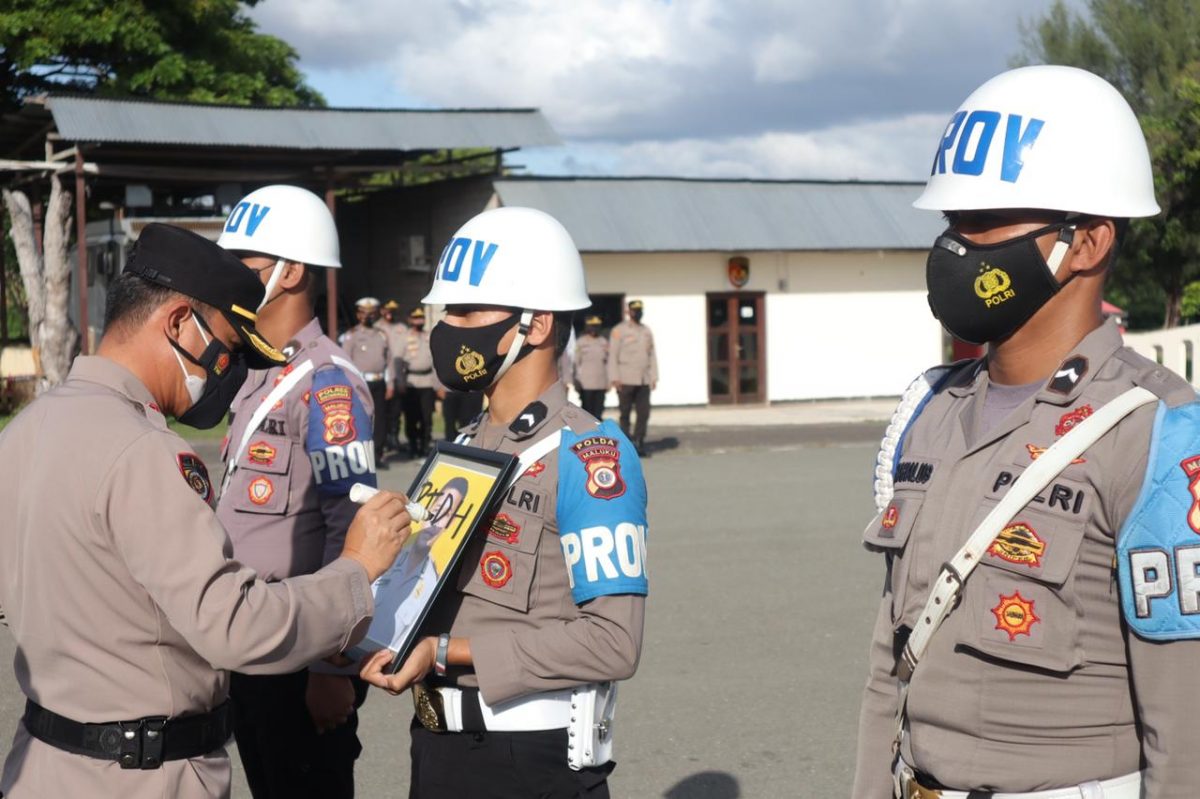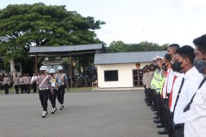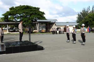 Upacara dilakukan dengan Pejabat Upacara terdiri dari Perwira Upacara dijabat oleh Kasat Samapta Iptu S. Kormasela, S