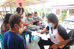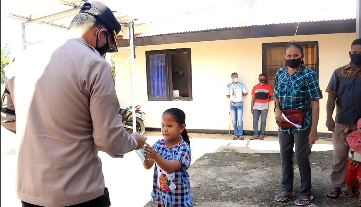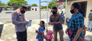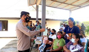 Tribratanews.polrestanimbar.com – Polda Maluku, Polres Kepulauan Tanimbar, Kapolres Tanimbar turun langsung cek kelancaran sekaligus bagi masker kepada masyarakat yang akan divaksin oleh Tim vaksinator Polres Tanimbar dan Brimob yang digelar kepada masyarakat penerima bantuan tunai pedagang kaki lima, warung dan nelayan (BTPKLWN) yang belum lakukan vaksinasi. (Sabtu/02/04/2022).