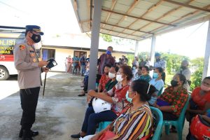 Kapolres Tanimbar AKBP Umar Wijaya, S.I.K., dengan didampingi beberapa pejabat Polres turun langsung pada gerai vaksinasi Polres dan lakukan dialog bersama masyarakat yang sedang mengantri untuk divaksin tentang imbauan pentingnya melaksanakan vaksinasi serta tak segan – segan beliau membagikan masker kepada masyarakat maupun anak yang kedapatan tidak menggunakan masker.