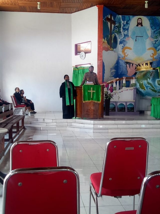 Tribratanews.polrestanimbar.com – Polda Maluku, Polres Maluku Tenggara Barat, Minggu 15 November 2020, pukul 09.00 wit, bertempat di Gedung Gereja Ebenhazer Werain Kecamatan Selaru Kabupaten Kepulauan Tanimbar mengikuti dan mengamankan pelaksanakan giat ibadah minggu.