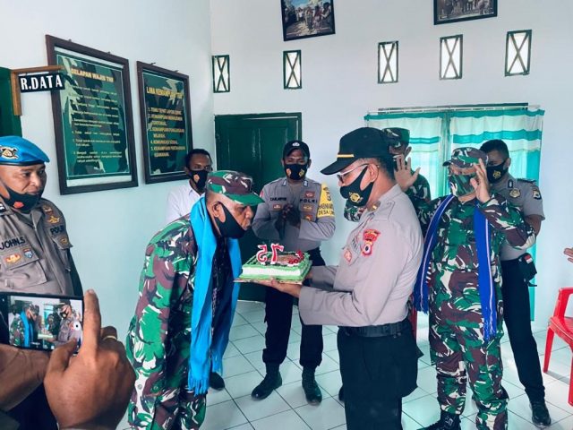 Kedatangan Kapolsek Selaru dan personil diterima langsung oleh Danramil 1507-07 Selaru Letda Inf. Daniel Batmomolin, dan pemberian Kue Ulang Tahun oleh Kapolsek dan personil Polsek Selaru. Kegiatan turut dimeriahkan oleh personil Koramil 1507-07 Selaru, dan dilanjutkan dengan giat Foto bersama.