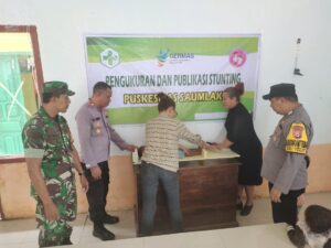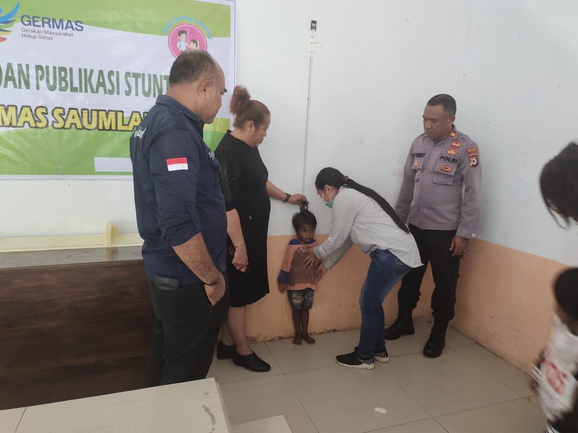 Tribratanews.polrestanimbar.com – Polda Maluku, Polres Kepulauan Tanimbar, Kapolsek Tansel Iptu E. Weridity bersama Bhabinkamtibmas mendampingi Tim Kesehatan Puskesmas Saumlaki melaksanakan kegiatan Pengukuran Dan Publikasi Stunting di Desa Lermatang, Kecamatan Tanimbar Selatan, Kabupaten Kepulauan Tanimbar, Sabtu (28/1/23).