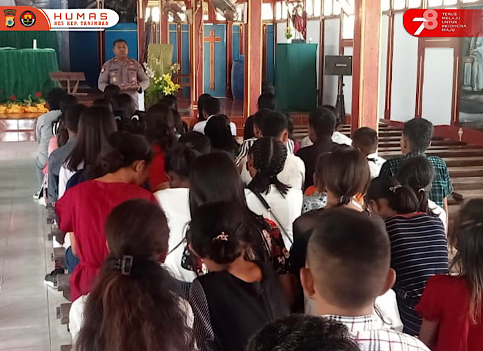 Tribratanews.polrestanimbar.com – Polda Maluku, Polres kepulauan Tanimbar, Polsek Wertamrian menggelar Minggu Kasih dengan memberikan Sosialisasi Kamtibmas tentang Perlindungan Anak dibawah umur kepada Orang muda Katolik (OMK) dan Anak-Anak Sekami Katolik, Minggu (06/08).