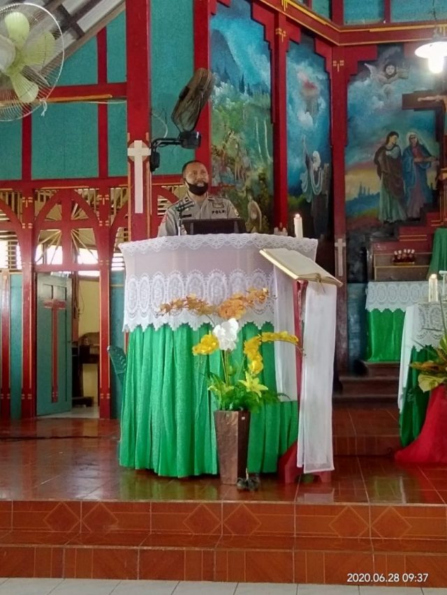 Tribratanews.polrestanimbar.com – Polda Maluku, Polres Maluku Tenggara Barat, Minggu 28 Juni 2020, pukul 08.00 wit, bertempat di Gereja St. Petrus dan Paulus Desa Lorulun Kecamatan Wertamrian Kabupaten Kepulauan Tanimbar Kapolsek Wertamrian Polres Maluku Tenggara Barat Ipda J. Samponu bersama Personil hadir dan mengamankan kegiatan Ibadah Minggu biasa XIII sekaligus Giat Mimbar Kamtibmas.