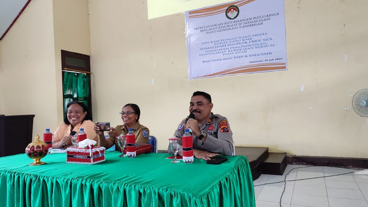 Terhadap kegiatan dimaksud, Materi Sosialisasi yang disampaikan oleh Kasa Binmas selaku Nara Sumber yaitu, tentang Perlindungan Anak dan Pencegahan Kekerasan Seksual terhadap Anak kepada para Siswa-siswa SMP dan SMA dilingkup kota Saumlaki yang hadir.