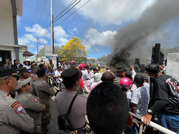 Sementara itu, perwakilan 20 (dua puluh) Orang dari masa aksi demo untuk hadir dalam audiensi tidak menerima jawaban yang disampaikan oleh Bupati dan Wakil Bupati, sehingga mereka langsung bergegas keluar dan membuat kericuhan di depan Kantor Bupati. Personel pengamanan yang bersiaga pun berusaha untuk menghalau massa yang telah anarki.