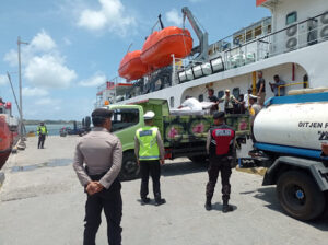 Setelah tiba dan sandar pada Pelabuhan Yos Sudarso Saumlaki, giat kemudian dilanjutkan dengan aktivitas bongkar muat Logistik Pilkada dari KM. Sabuk Nusantara 72 ke 2 (dua) Unit Mobil Dump Truck untuk selanjutnya dapat didistribusikan ke Gudang logistik KPU yang berlokasi di kompleks Tanimbar Raya Saumlaki.