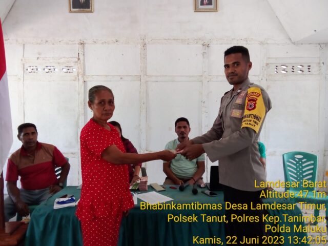 Kegiatan penyaluran BLT yang berlangsung di Desa Lamdesar Timur, Kecamatan Tanimbar Utara, Kabupaten Kepulauan Tanimbar berlangsung dengan tertib, aman dan lancar sesuai harapan bersama, yang mana dengan hadirnya Bhabinkamtibmas tersebut sangat dirasakan oleh para penerima bantuan.