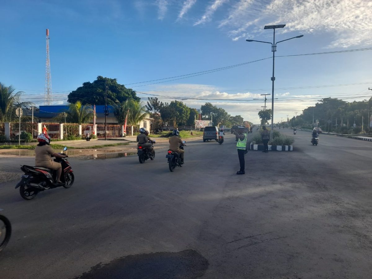 KBO Lantas Polres Tanimbar Pimpin personil lakukan kegiatan rutin Gatur Lalu lintas Jam rawan Pagi