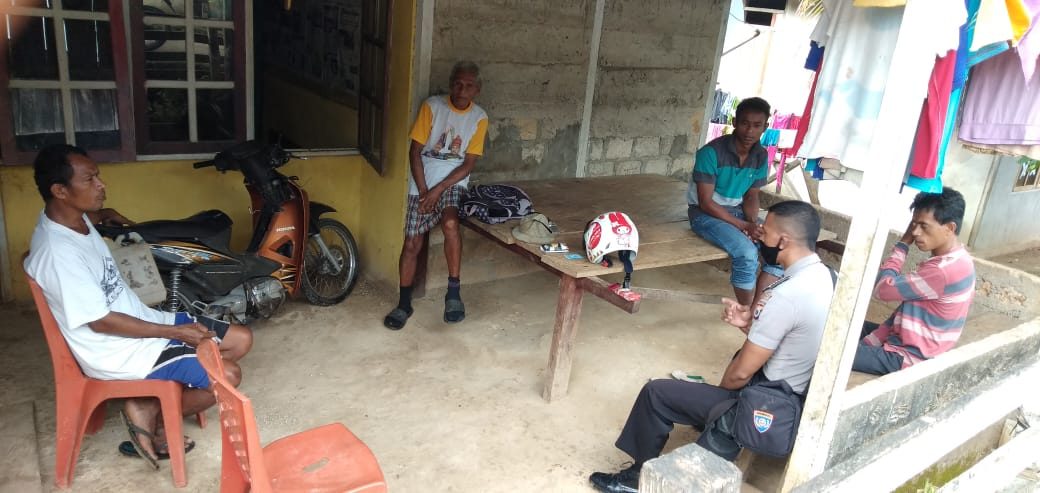 Tribratanews.polrestanimbar.com – Polda Maluku, Polres Maluku Tenggara Barat, Selasa 09 Juni 2020, pukul 08.00 Wit, bertempat di Desa Batuputih, Kecamatan Wermaktian Kabupaten Kepulauan Tanimbar Bhabinkamtibmas Desa Batuputih Bripka Primus Titirloloby melaksanakan giat door to door system ( DDS ) dalam bentuk kunjungan terhadap keluarga Bapak Musa Balak warga  Rt 003 / Rw 02 yang sedang mengobrol di dalam rumah bersama keluarganya.