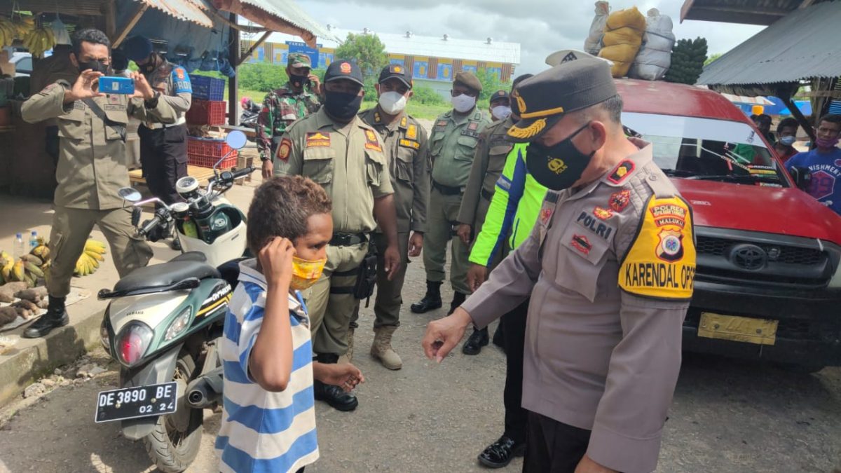 Kegiatan Operasi Yustisi pembagian masker gratis kepada masyarakat oleh personil gabungan TNI/Polri dan Satpol PP. Kabupaten Kepulauan Tanimbar berlangsung aman dan lancar.