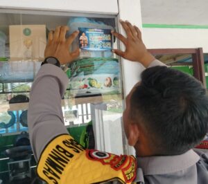 Disela-sela kegiatan Sosialisasi tersebut, Terpantau Kasubastgas Binmas juga turut melakukan penyebaran Pamflet atau Stiker Imbauan dan pesan Kamtibmas menjelang Pemilu serentak tahun 2024 yang aman dan kondusif.