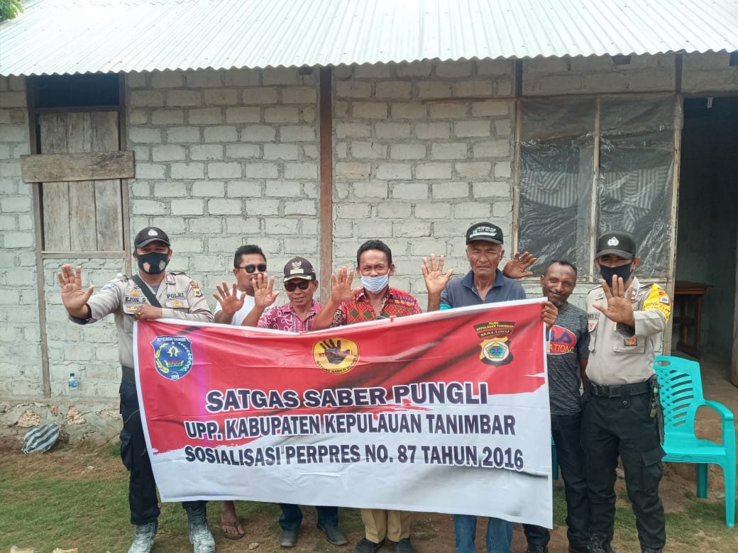 Tribratanews.polrestanimbar.com – Polda Maluku, Polres Maluku Tenggara Barat, Senin 19 Oktober 2020, pukul 12.00 wit, bertempat di Desa Lamdesar Timur, Kecamatan Tanimbar Utara, Kabupaten Kepulauan Tanimbar P.S. Kanit Binmas Polsek Tanimbar Utara Bripka Freyjon R. Sianressy bersama Bhabinkamtibmas Desa Lamdesar Timur Briptu M. Lewir melaksanakan kegiatan sosialisasi Perpres Nomor 87 Tahun 2016 tentang Satgas Saber Pungli (Satuan Tugas Sapu Bersih Pungutan Liar) kepada masyarakat Desa Lamdesar Timur Kecamatan Tanimbar Utara Kabupaten Kepulauan Tanimbar.