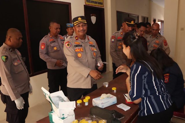 Tribratanews.polrestanimbar.com – Polda Maluku, Kepolisian Resor Kepulauan Tanimbar, Sebagai bentuk komitmen dalam memberantas penyalahgunaan narkotika di internal Kepolisian, Polres Kepulauan Tanimbar menggelar pemeriksaan urine pada, Selasa (24/02/26) pagi.