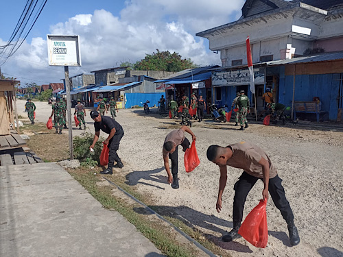 Kompak, TNI Polri di Kabupaten Kepulauan Tanimbar lakukan bersih-bersih lingkungan
