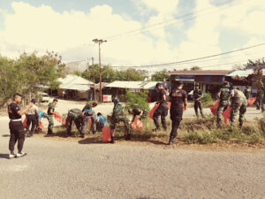 Dengan semangat gotong royong yang tinggi, tampak terlihat Personel TNI Polri bersinergi dan dibantu Masyarakat sekitar bahu membahu secara gotong royong melaksanakan Karya Bakti dengan sasaran, melakukan pembersihan pada kompleks Pasar Omele hingga pengecatan pada tempat Ibadah yang berlangsung di Mesjid Baabutaqwa Kompleks Pasar Omele.