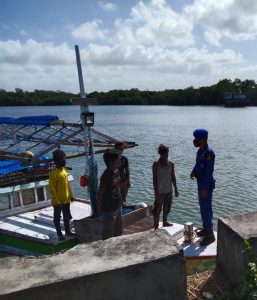 Personil Satuan Polairud Polres Tanimbar yang berjumlah 2 orang dibawah Pimpinan Ka Tim Bripka R. Sinay ini, juga menyampaikan dan menghimbau agar selalu memperhatikan cuaca ekstrim ketika hendak berlayar sekaligus melakukan Edukasi tentang Protokol kesehatan Pencegahan Covid-19 selama berlayar.