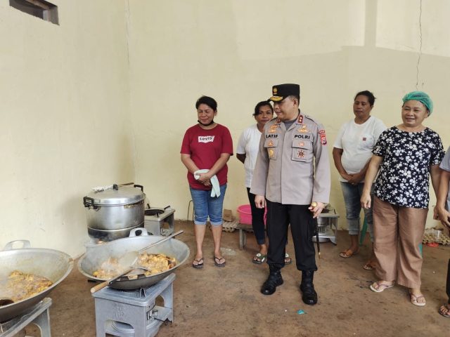 Tribratanews.polrestanimbar.com – Polda Maluku, Polres Kepulauan Tanimbar, Kapolda Maluku Irjen Pol Drs. Lotharia Latif, S.H., M.Hum., didampingi Ketua Bhayangkari Daerah Maluku Ny. Evi Lotharia Latif dan Kapolres Tanimbar AKBP Umar Wijaya, S.I.K., mengunjungi Dapur Umur Bhayangkari Cabang Tanimbar dalam rangka mendukung pelaksanaan Pengamanan personil TNI – Polri pada Kunjungan Kerja Presiden Republik Indonesia di Tanimbar. Rabu (31/08).