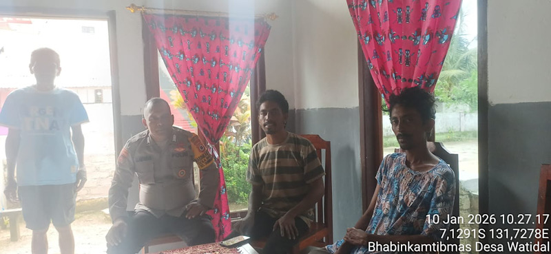 Tribratanews.polrestanimbar.com – Polda Maluku, Kepolisian Resor Kepulauan Tanimbar, Berbagai upaya Kepolisian dalam menjaga stabilitas keamanan terus digencarkan. Bhabinkamtibmas Desa Watidal, Bripka JAKARIA LANDUNGAN melaksanakan kegiatan Door to Door System (DDS) dengan menyambangi kediaman keluarga KRSITO TAIL di RT 003 RW 002, Desa Watidal, Kecamatan Tanimbar Utara pada, Sabtu (10/01/26).