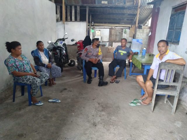 Polda Maluku, Polres Maluku Tenggara Barat . Senin tanggal 15 Juni 2020, pukul 12.40 Wit, bertempat di Desa Amdasa. Kecamatan Wertamrian. Kabupaten Kepulauan Tanimbar. Bhabinkamtibmas Desa Amdasa BRIPKA J.I.M.MANULLANG, melaksanakan giat sambang ( DDS ) pada keluarga Refwualu yang sementara berada pada rumahnya.