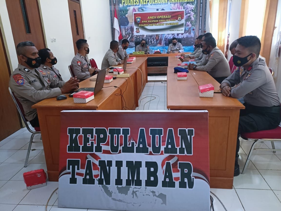 Tribratanews.polrestanimbar.com – Polda Maluku, Polres Kepulauan Tanimbar, Rabu tanggal 06 Oktober 2021 pukul 08.30 wit, bertempat di ruangan Vicon, Polres Kepulauan Tanimbar melaksanakan kegiatan analisa dan evaluasi (Anev) Operasi Bina Waspada Siwalima tahun 2021.